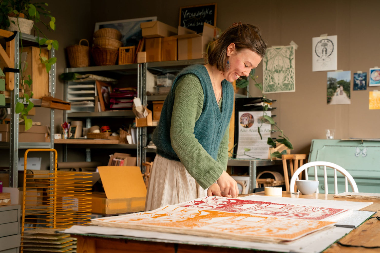 Na een verbonden dag creëren ga je naar huis met afdrukken van jouw zelf gemaakte linosnede op verschillende handgeschepte papieren. Doe je mee?