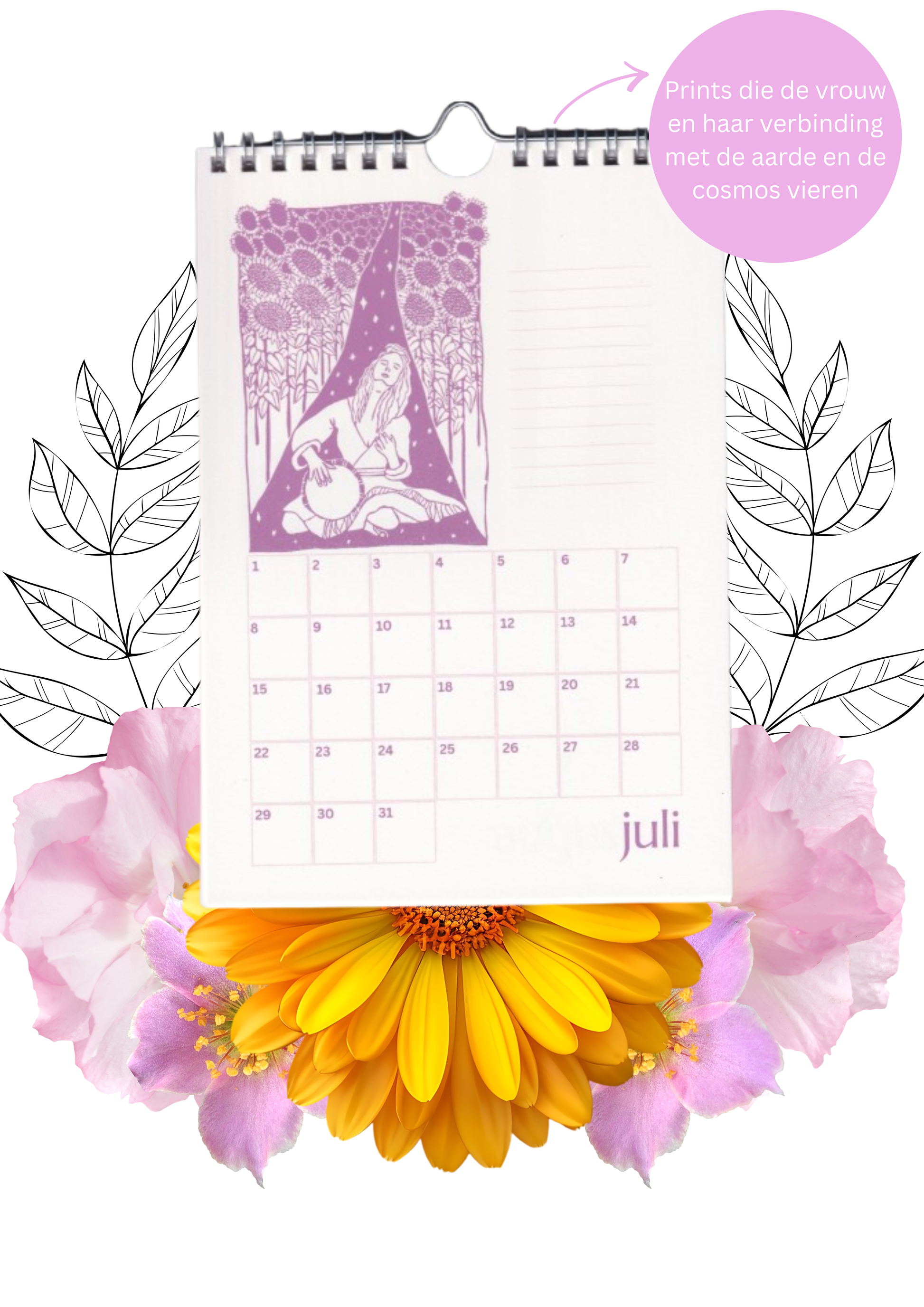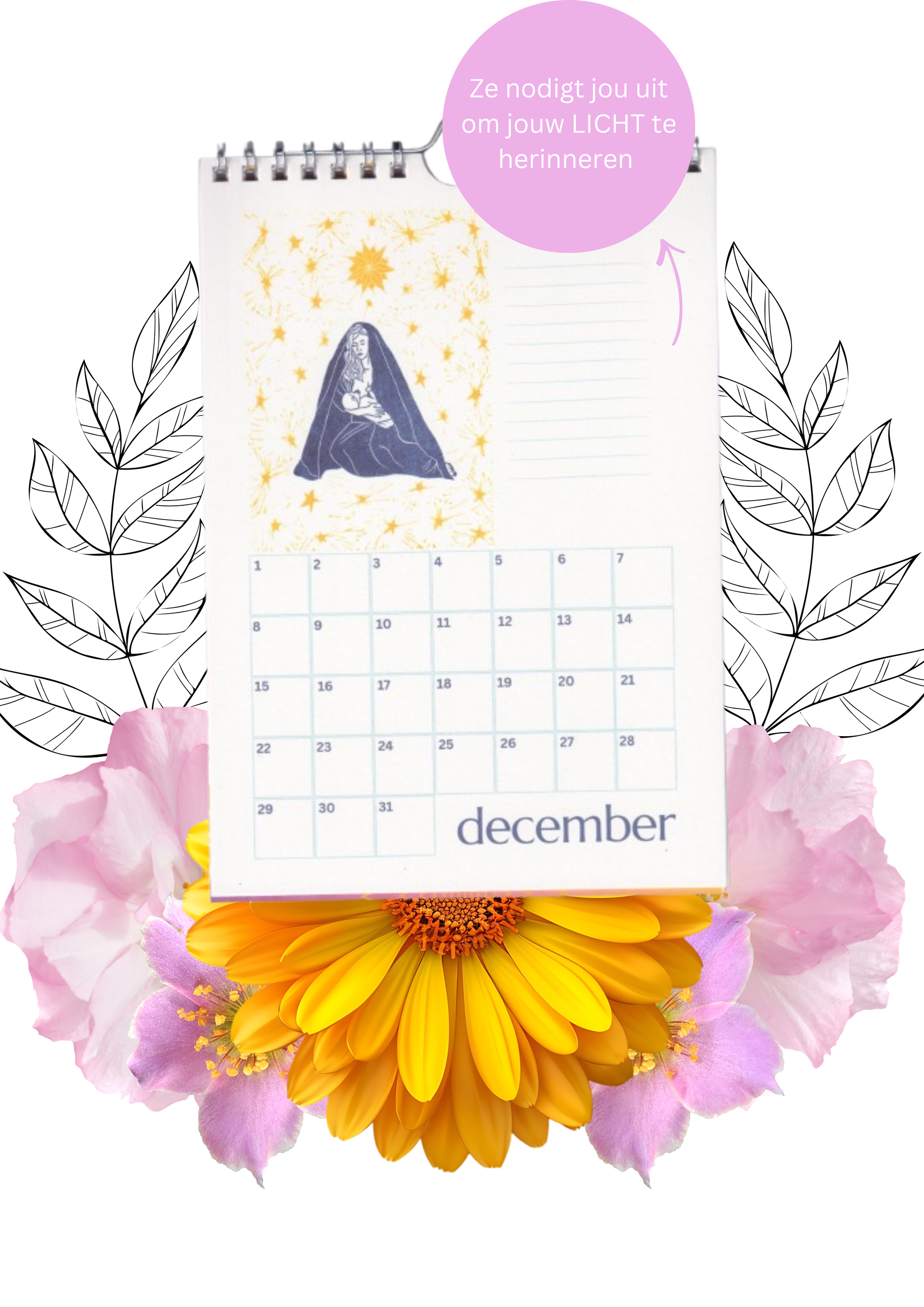 Deze kalender nodigt je uit om jouw LICHT te herinneren, te verbinden met jouw intuïtie en vrouwelijke kracht. Elke maand bevat een bezielde linosnede van Aike Ananda Art.