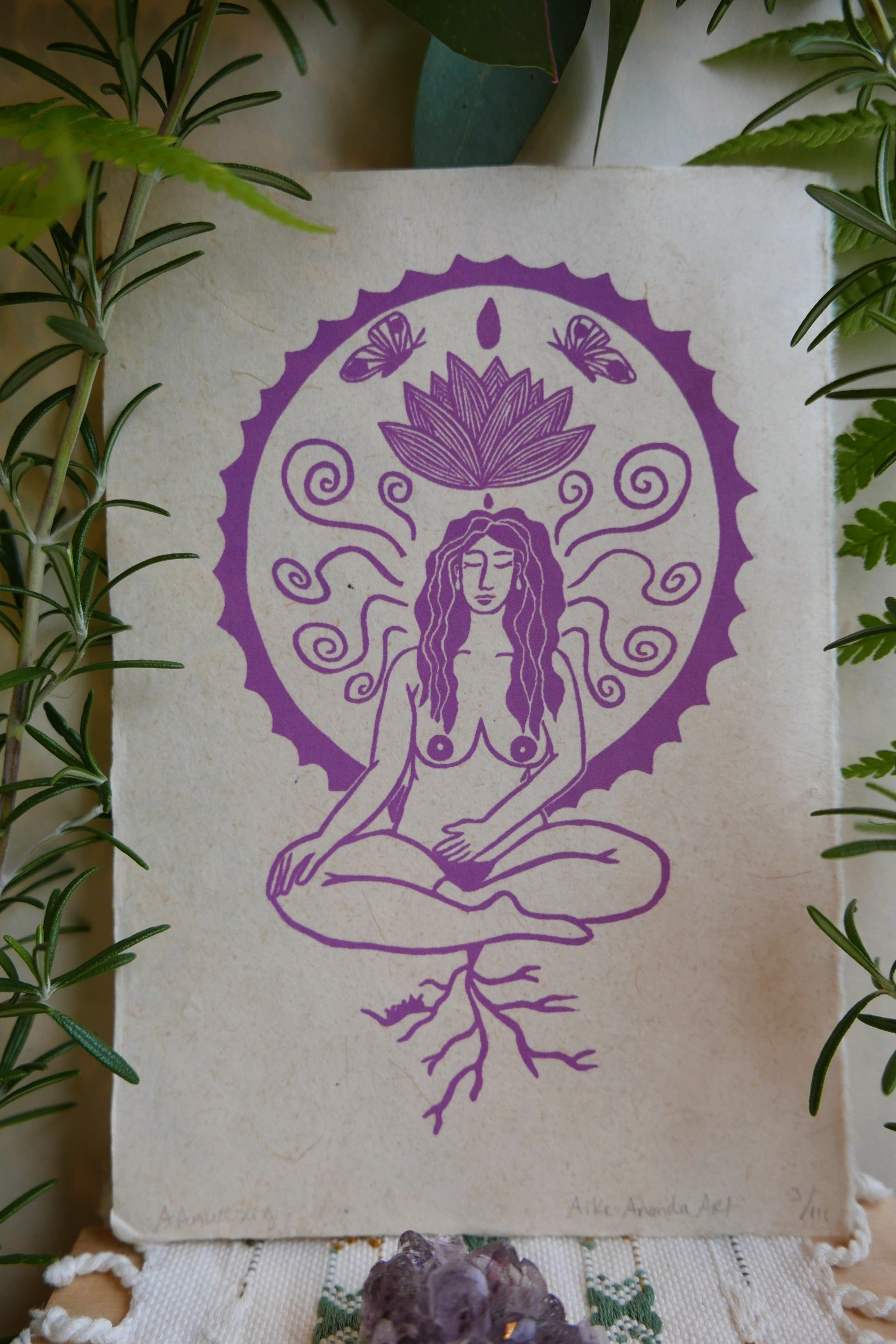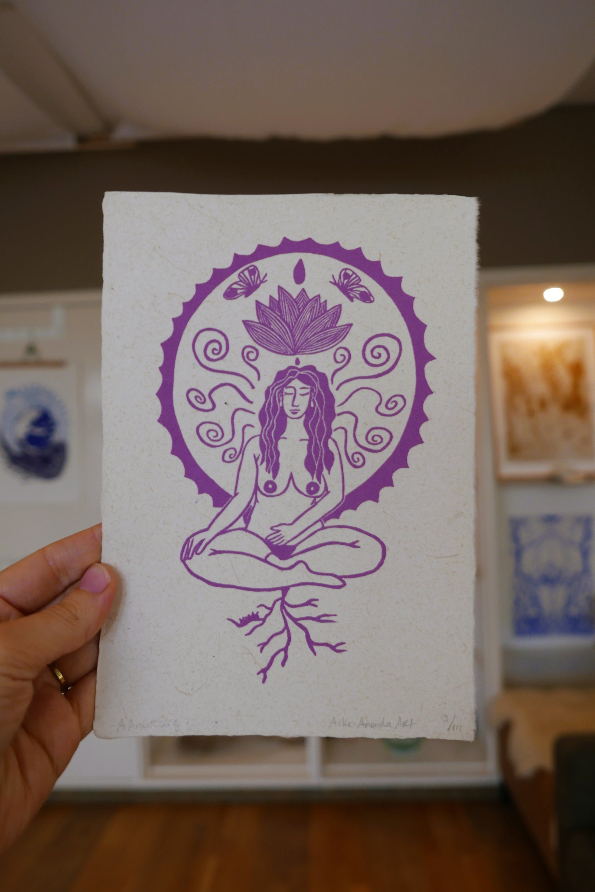 Kleuren en papier kunnen iets afwijken omdat de print hand gedrukt is en het papier handgemaakt.