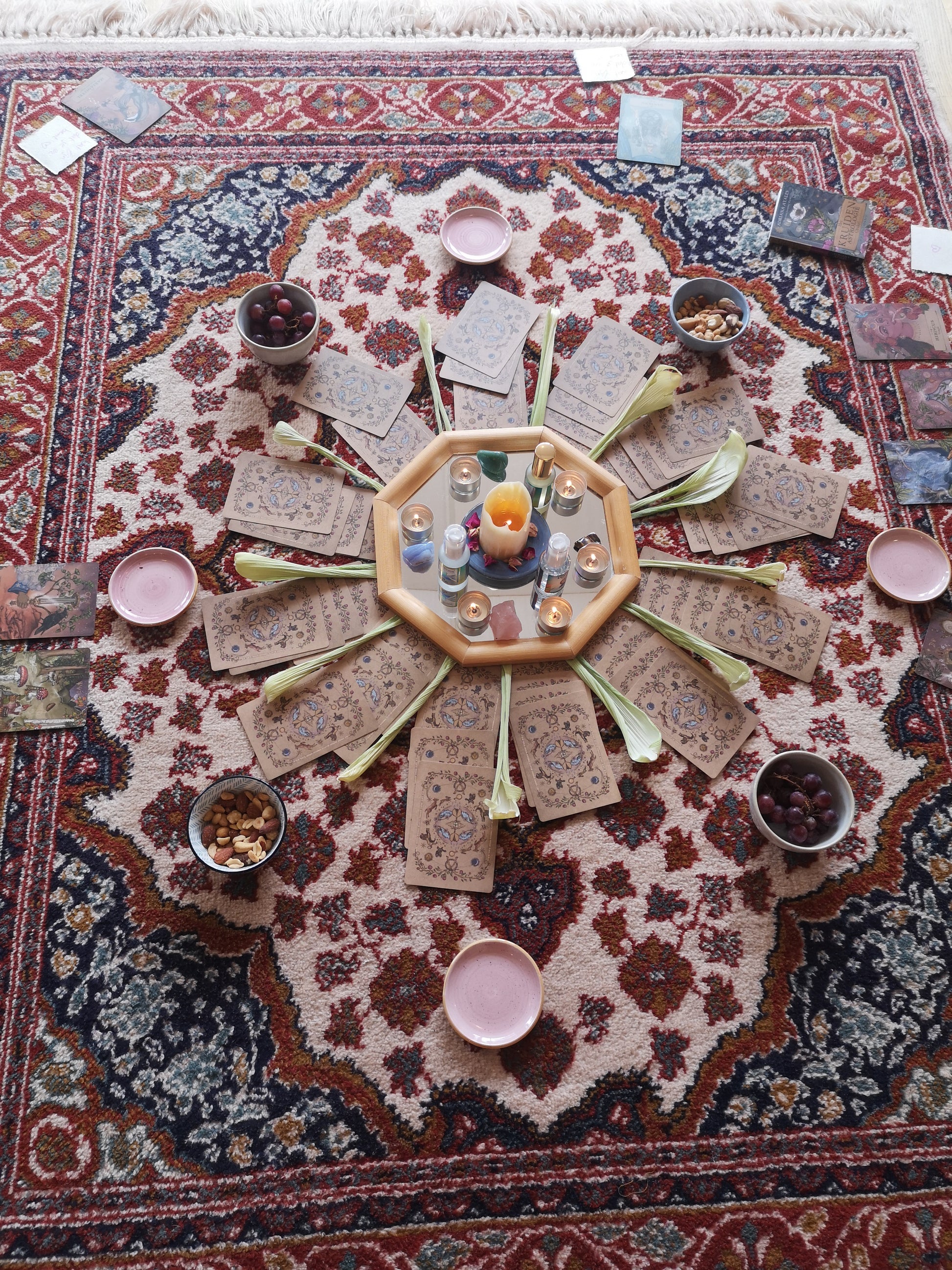 Wauw wat een bijzondere dag vandaag. Het begon al met alle liefdevolle en uitnodigende details waarmee Aike haar ruimte had voorbereid op onze komst. De stapeltjes papier die klaar lagen, de cirkel met kaarten, stenen en kaarsjes. Alles tot in de puntjes! En dan haar meditatie. Zo helder, gegrond en dragend. Van daaruit naar de tafel om te schetsen. Aike legt alle stappen geduldig uit, schaaft bij waar nodig en laat ruimte voor het proces. We mochten zoveel papier testen, de drukpers uitproberen en nog meer eigen kleuren mengen. Kortom: Aikes sfeer, liefdevolle begeleiding en dragende bedding, zorgen echt voor een rituele dag!