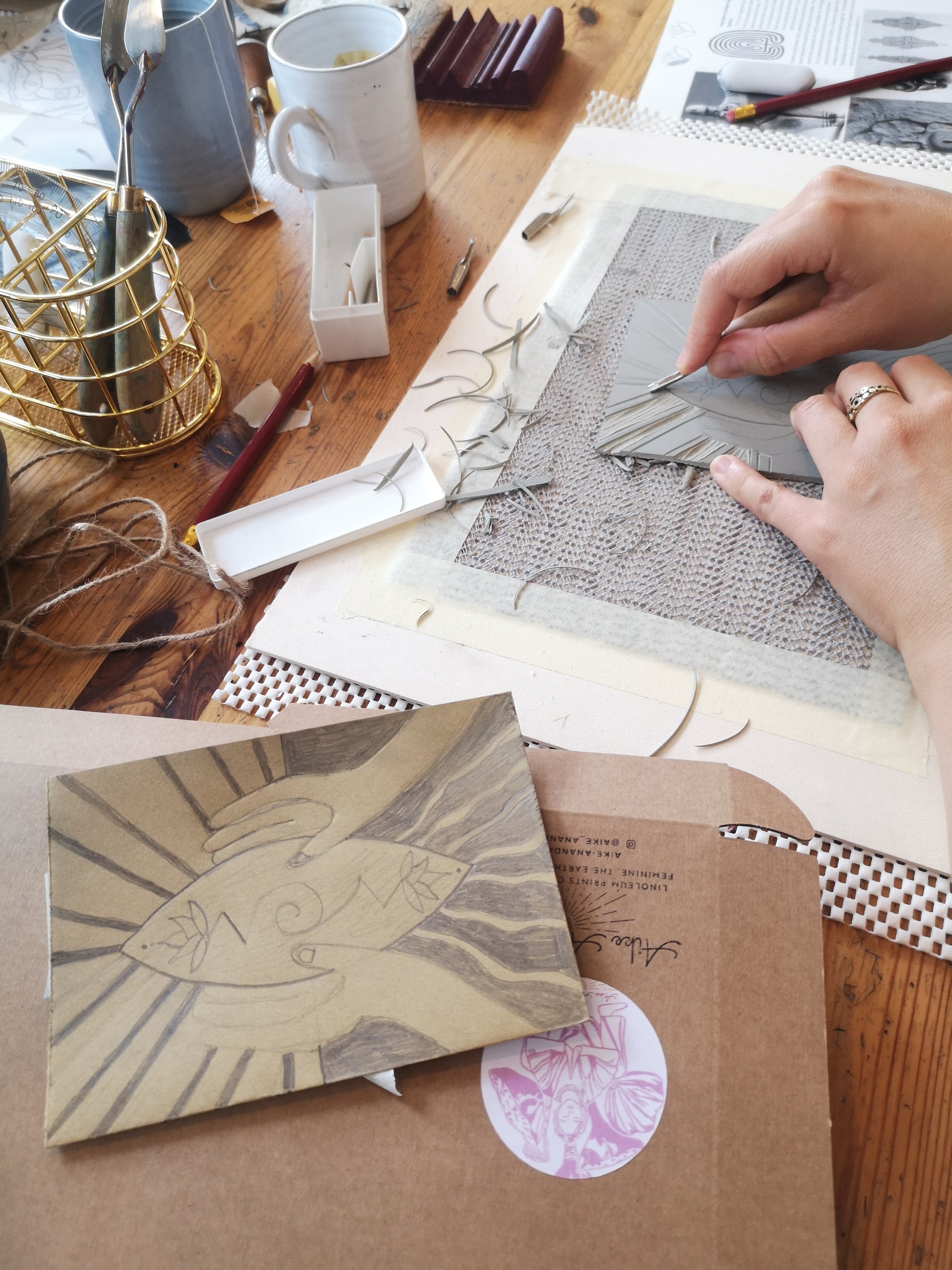 De linosnede workshop was verbindend voor mezelf (het thema VROUW werd zo ingebed door Aike dat het de rest van de dag voelbaar bleef) en ik heb onwijs veel geleerd! Ik raad de workshop aan aan iedereen die behoefte heeft om de skills te leren van een super bekwame vakvrouw met gevoel voor vrouwelijkheid en beelddenken.