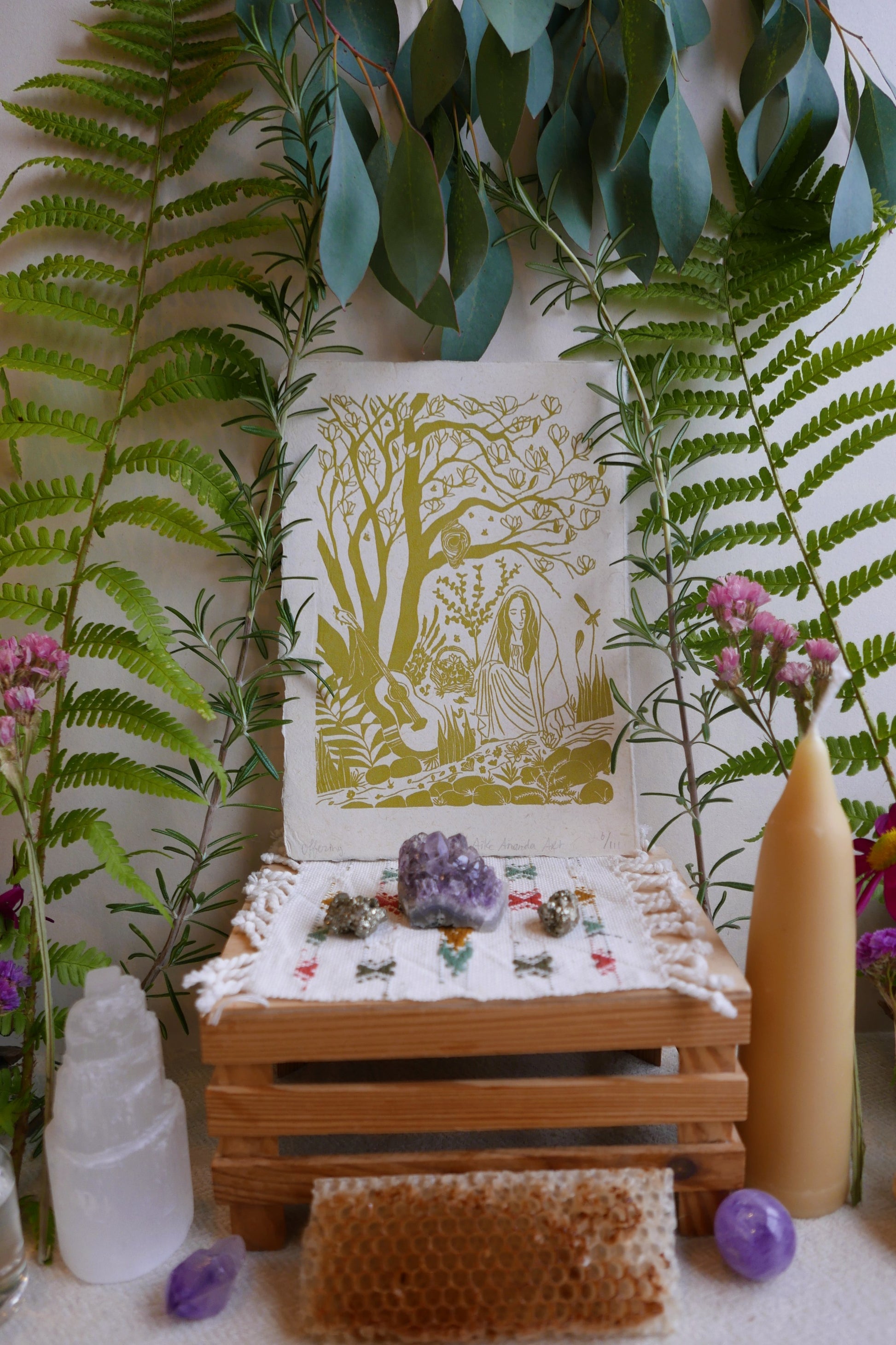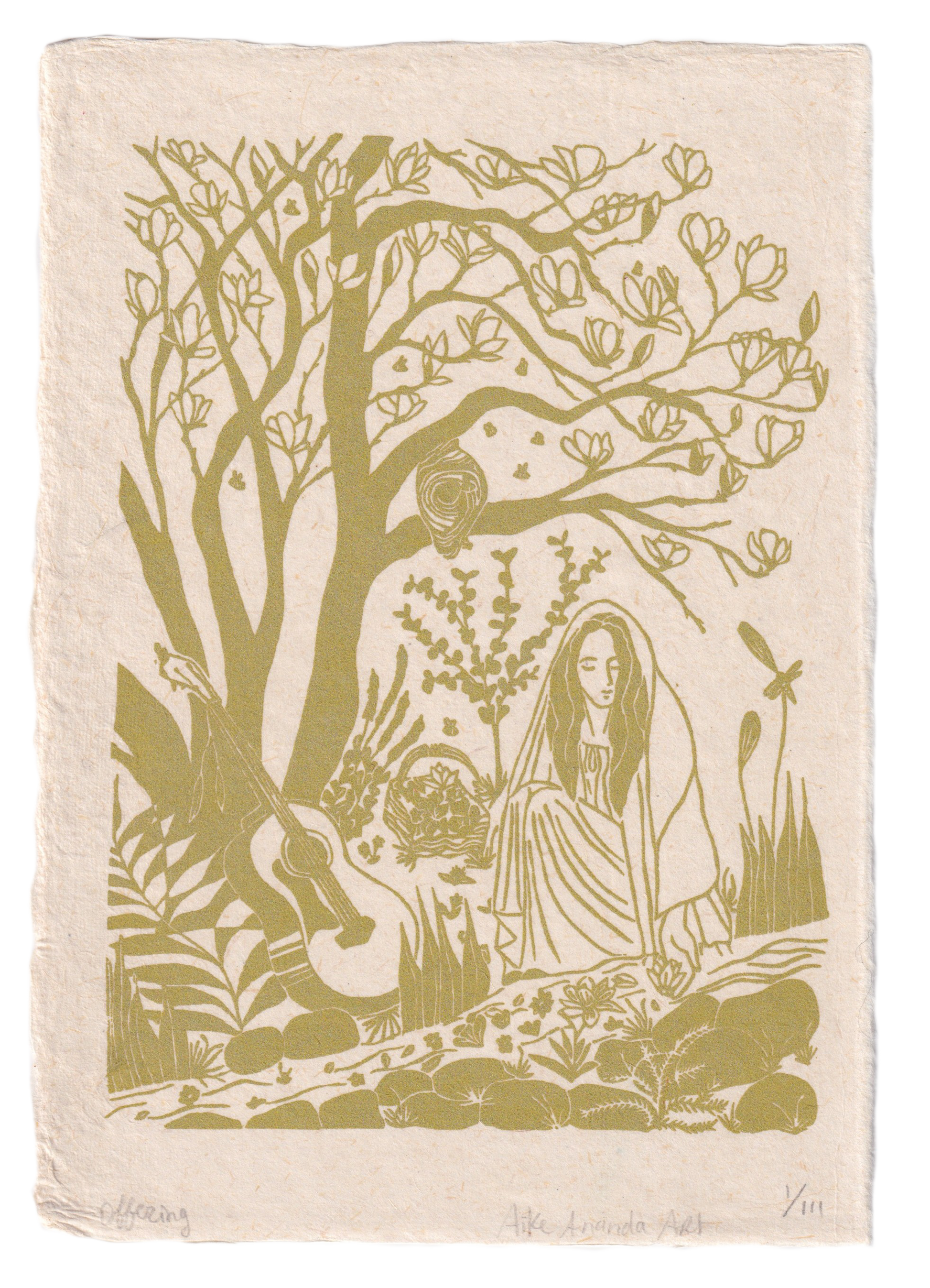 Kleuren en papier kunnen iets afwijken omdat de print hand gedrukt is en het papier handgemaakt.