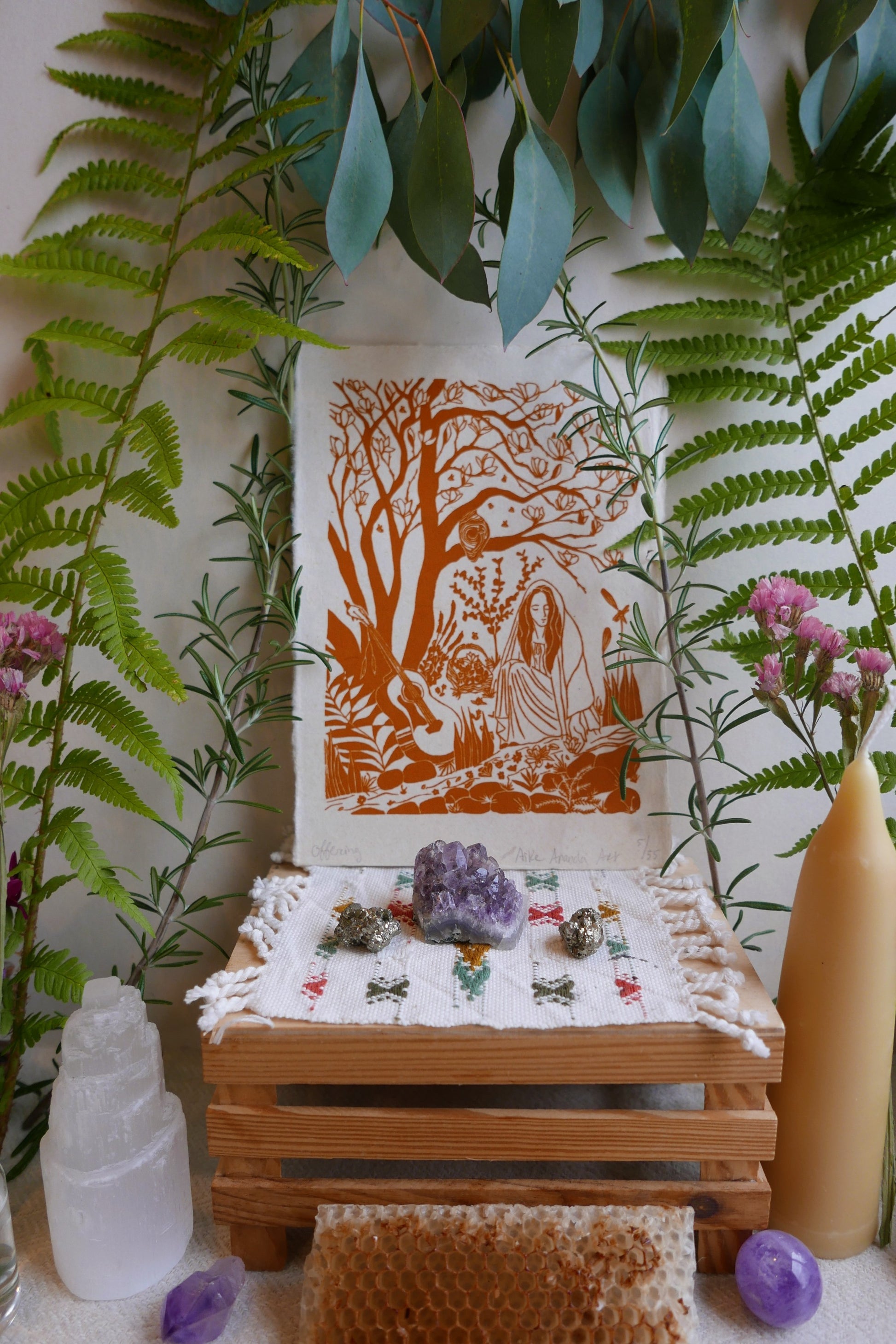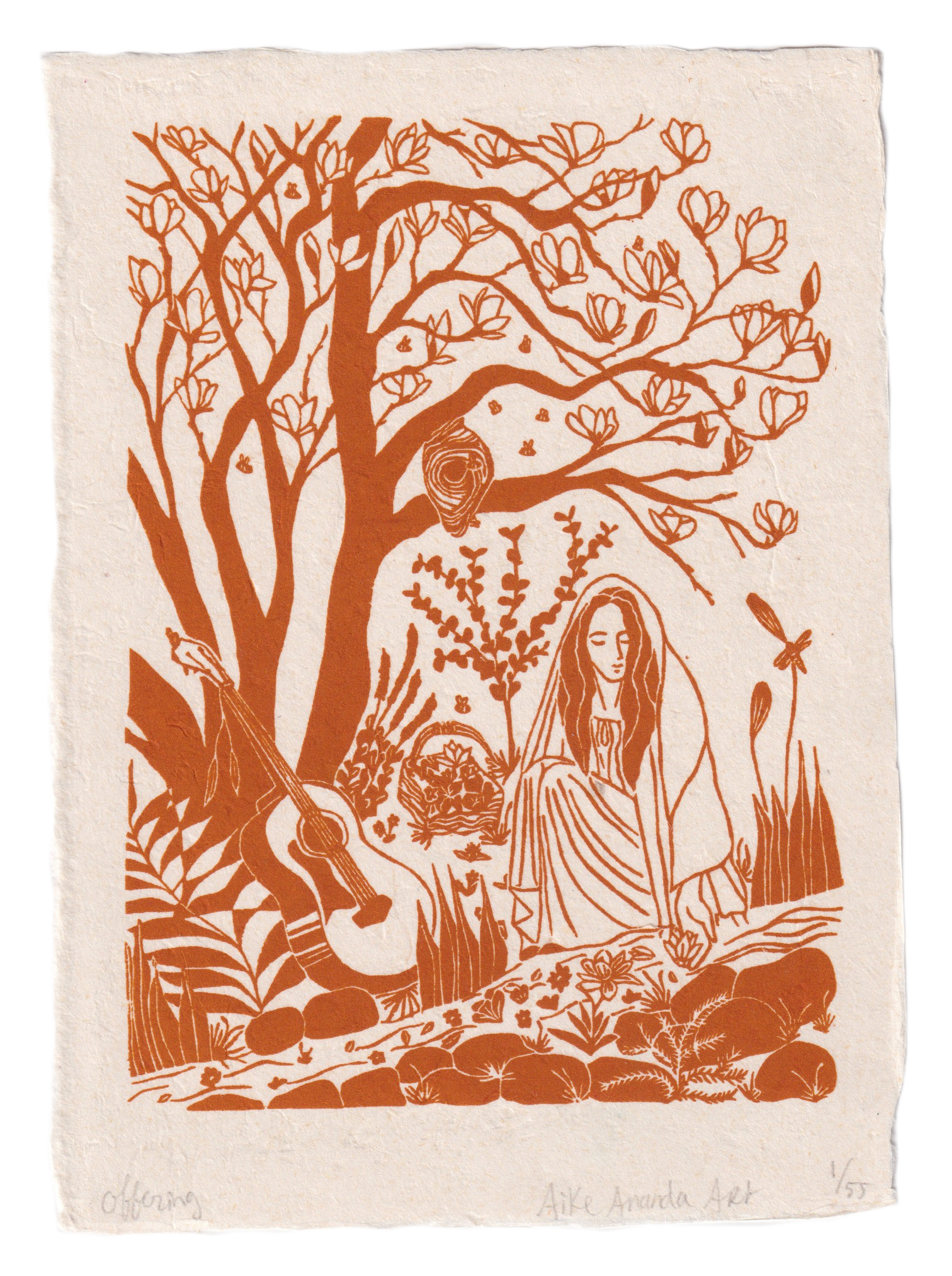 Kleuren en papier kunnen iets afwijken omdat de print hand gedrukt is en het papier handgemaakt.
