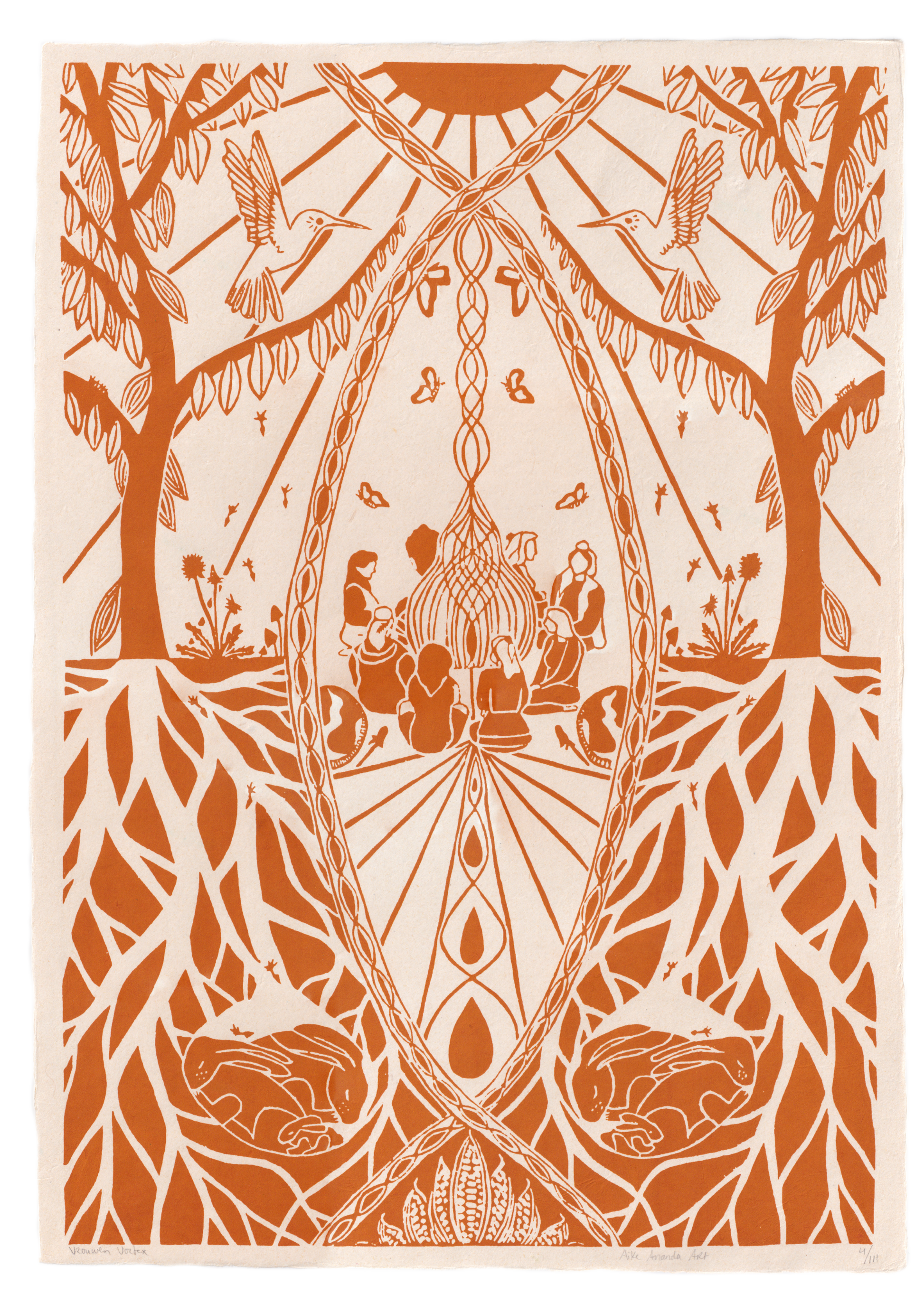 Kleuren en papier kunnen iets afwijken omdat de print hand gedrukt is en het papier handgemaakt.