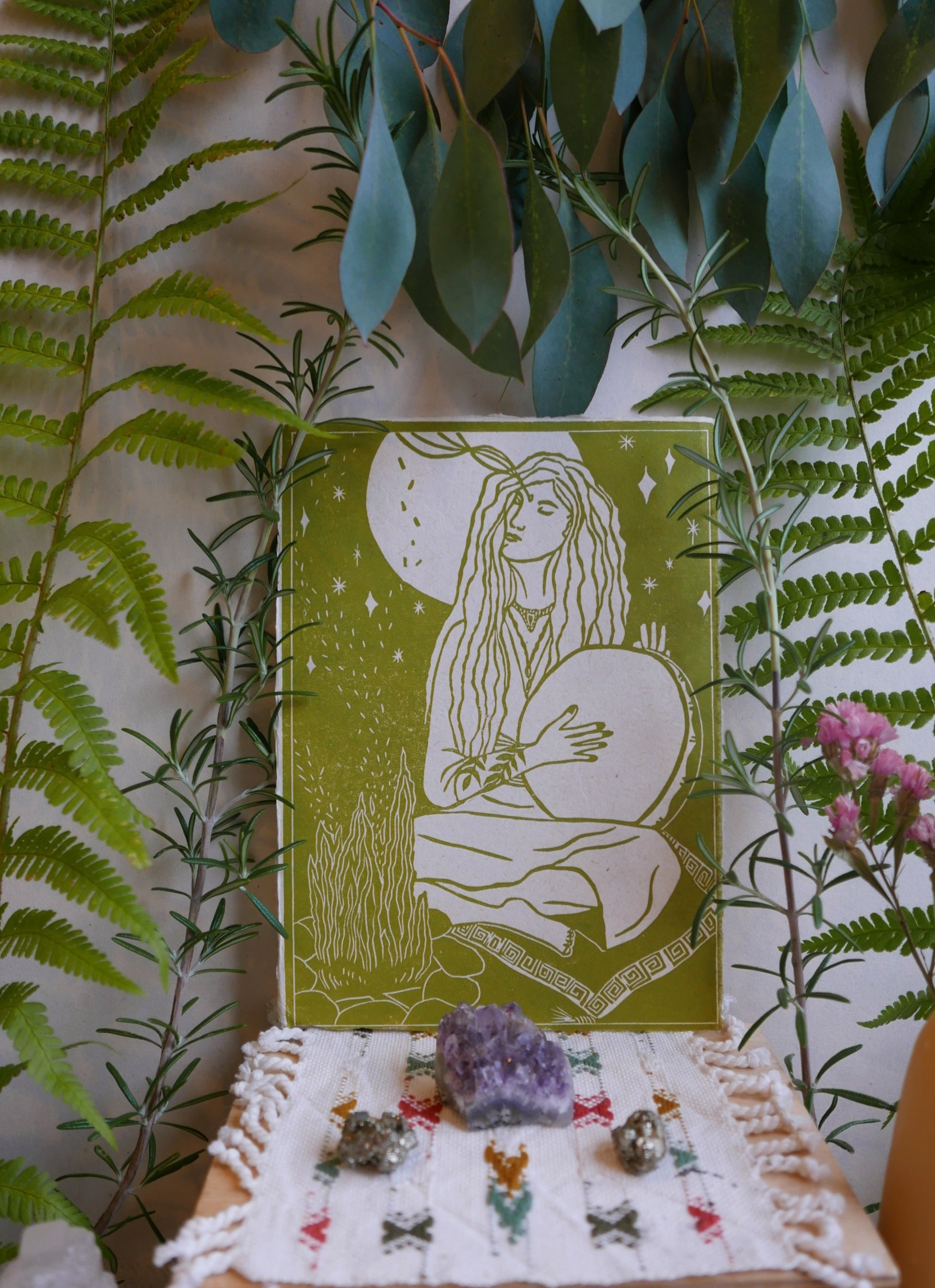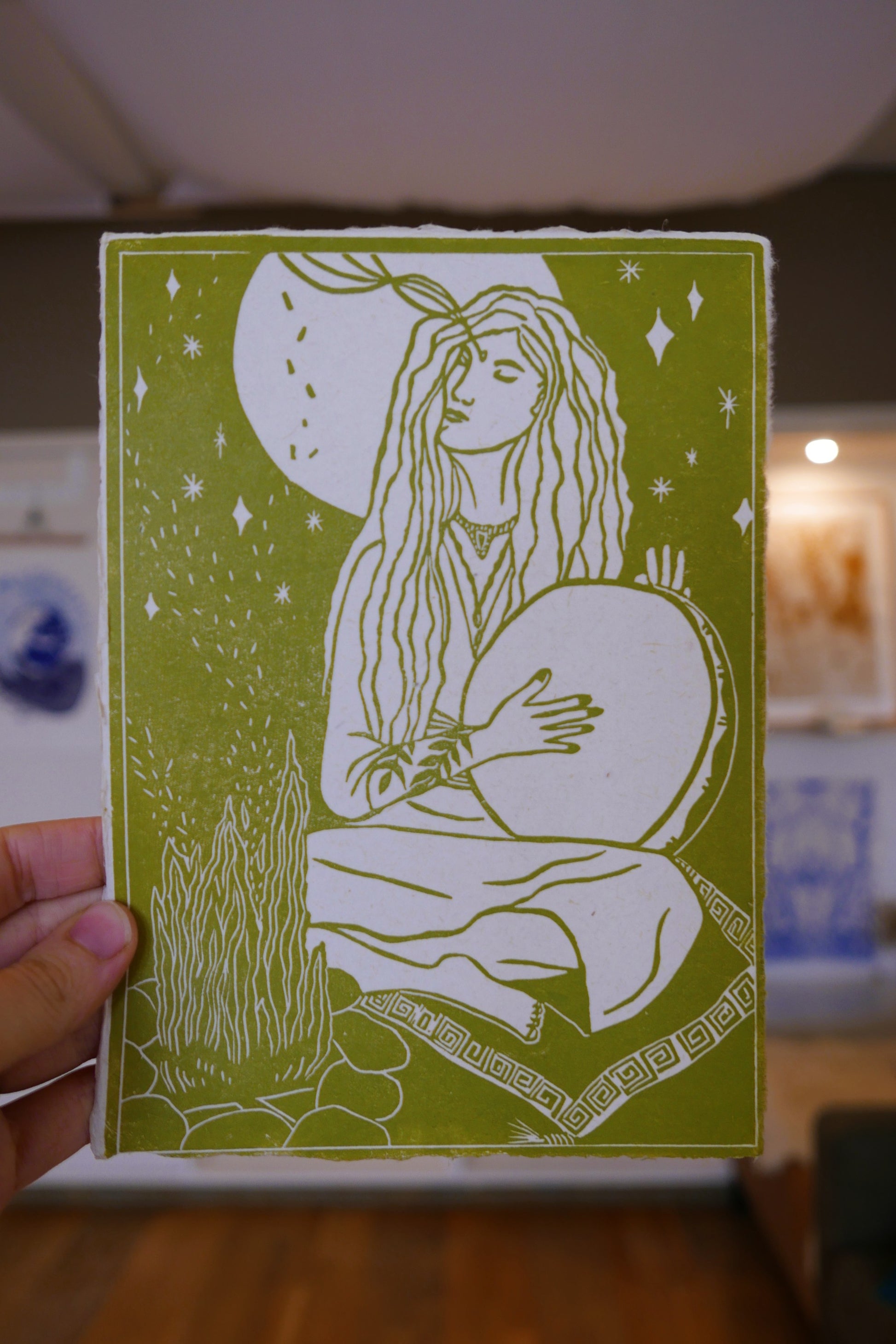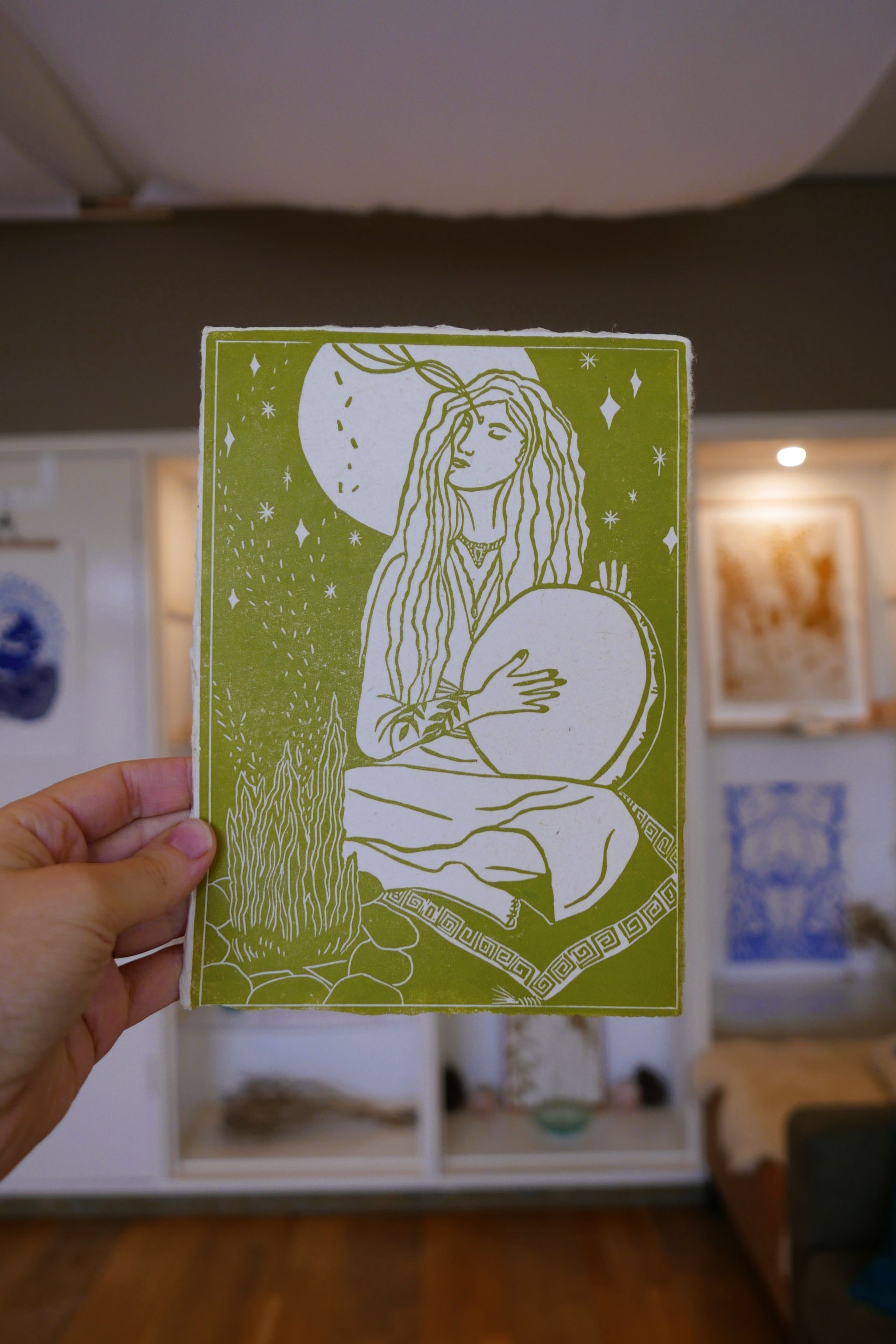 Kleuren en papier kunnen iets afwijken omdat de print hand gedrukt is en het papier handgemaakt.